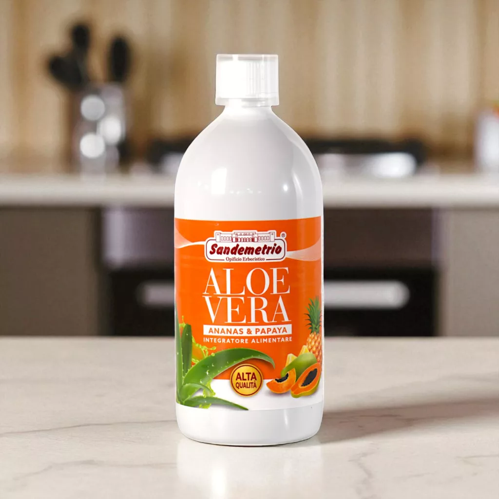 A Sandemetrio Ananászos-Papayás Aloe Vera egy ízletes üdítőital, amely a tiszta aloe vera gélt ötvözi az ananász és a papaya egzotikus, trópusi ízével. Az ital valódi aloe vera levélből származó darabokat tartalmaz, ami különleges textúrát és élményt nyújt. Fogyasztása behűtve ajánlott, kiváló szomjoltó a nap bármely szakában. Az 1000 ml-es kiszerelés ideális az egész család számára.